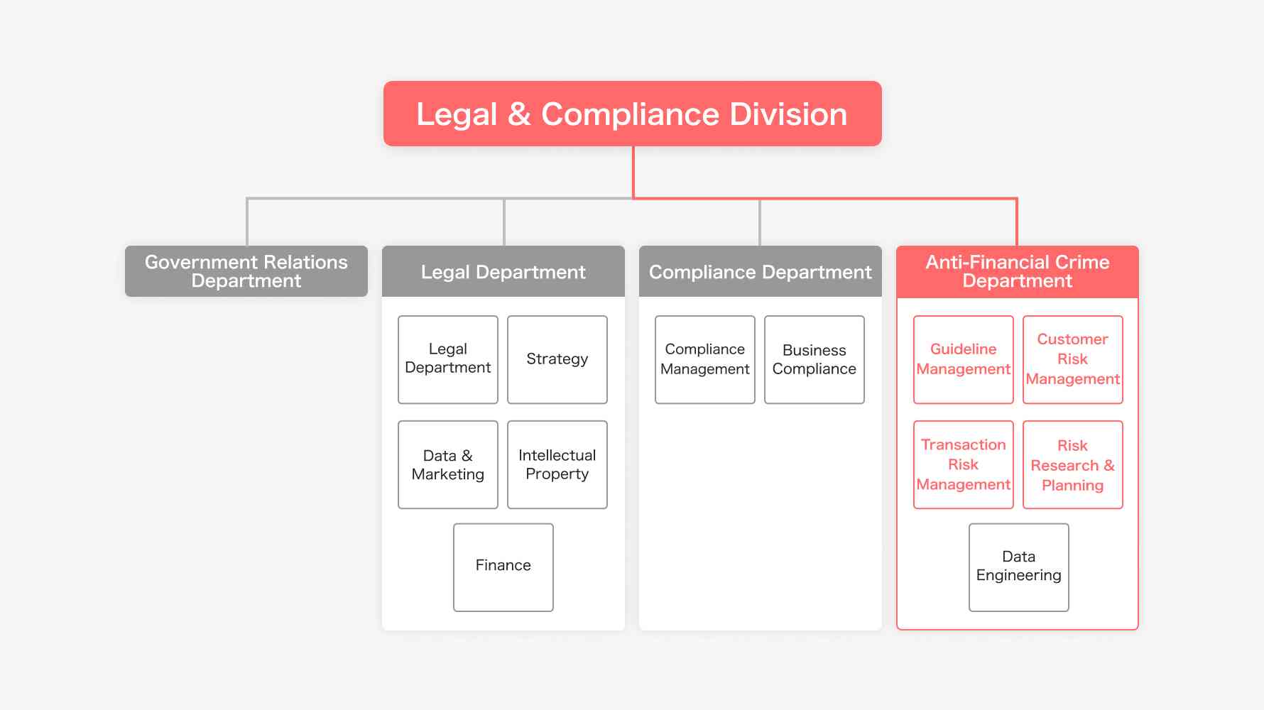 Our team plays three primary roles. One is to manage and promote company-wide AML/CFT measures Our efforts range from the development of annual AML programs to training and even collaboration with group companies.